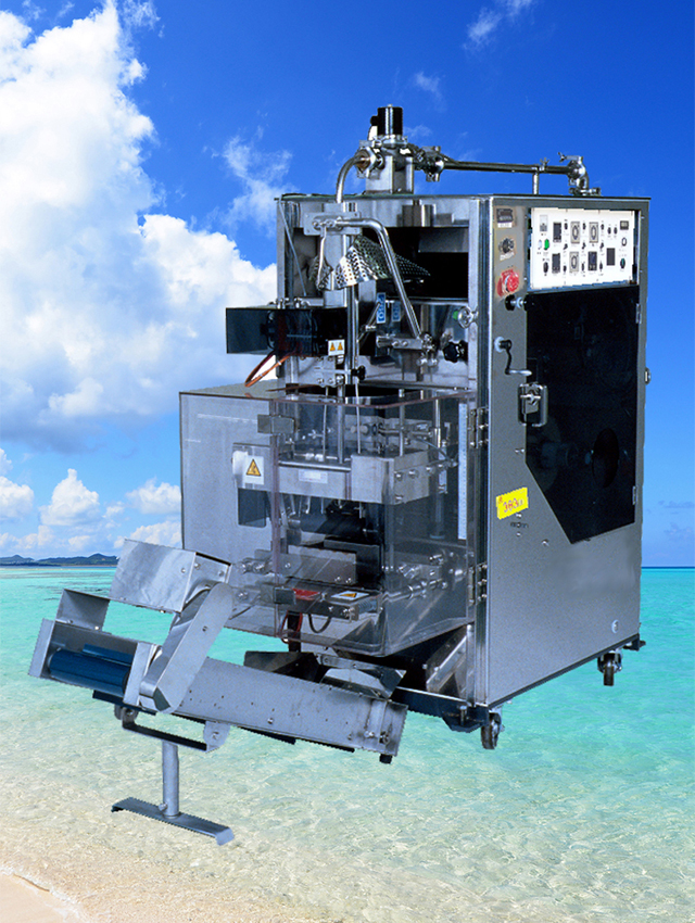 - 固形物と液体を同時に包装できる包装機です。