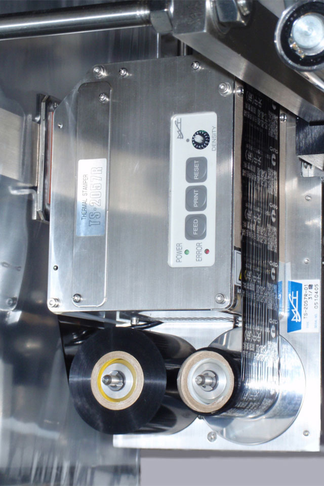 - 液体専用包装機で有効なシゴキローラーを有し、充填容量を正確にするためと、無人に近い運転をするためのプログラムが入力されています。
